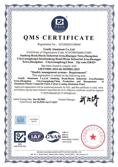 Genify Aluminium Co., Ltd. located in south of Pearl River Delta, China, is a highly qualified manufacturer and exporter of prepainted color coated aluminum coils, aluminum composite panels (ACP), film lamination aluminum ceilings,and aluminum honeycombs. We are a factory specializing in the developing, manufacturing and sales of aluminum materials.